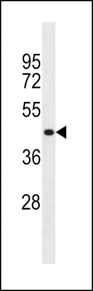 Western blot analysis of lysate from HepG2 cell line, using HHCM Antibody (C-term)(Cat. APR04330G). APR04330G was diluted at 1:1000 at each lane. A goat anti-rabbit IgG H&L(HRP) at 1:5000 dilution was used as the secondary antibody. Lysate at 35ug per lane. |
