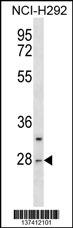 CTRL Antibody (Center) (Cat. APR04341G) western blot analysis in NCI-H292 cell line lysates (35ug/lane).This demonstrates the CTRL antibody detected the CTRL protein (arrow). |