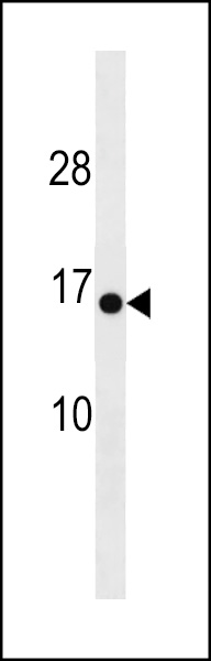 HIGD1C Antibody (C-term)(Cat. APR04411G) western blot analysis in mouse heart tissue lysates (35ug/lane).This demonstrates the HIGD1C antibody detected the HIGD1C protein (arrow). |