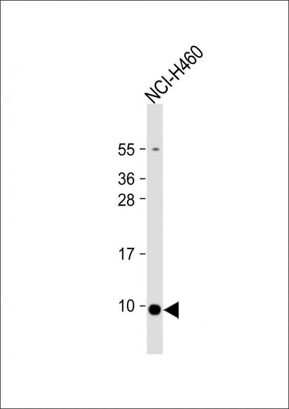 Anti-CCL17 Antibody (C-term) at 1:1000 dilution + NCI-H460 whole cell lysate Lysates/proteins at 20 μg per lane. Secondary Goat Anti-Rabbit IgG, (H+L), Peroxidase conjugated at 1/10000 dilution. Predicted band size : 11 kDa Blocking/Dilution buffer: 5% NFDM/TBST. |
