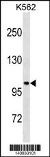 STARD13 Antibody (Center) (Cat. APR04456G) western blot analysis in K562 cell line lysates (35ug/lane).This demonstrates the STARD13 antibody detected the STARD13 protein (arrow). |