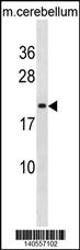 LIN7B Antibody (N-term) (Cat. APR04471G) western blot analysis in mouse cerebellum tissue lysates (35ug/lane).This demonstrates the LIN7B antibody detected the LIN7B protein (arrow). |