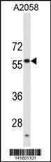 USP14 Antibody (C-term) (Cat. APR04489G) western blot analysis in A2058 cell line lysates (35ug/lane).This demonstrates the USP14 antibody detected the USP14 protein (arrow). |