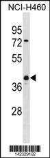 UCHL5 Antibody (Center) (Cat. APR04508G) western blot analysis in NCI-H460 cell line lysates (35ug/lane).This demonstrates the UCHL5 antibody detected the UCHL5 protein (arrow). |