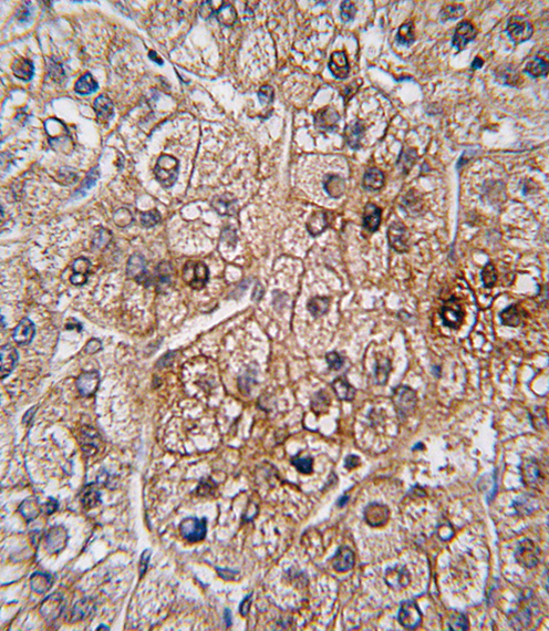 Formalin-fixed and paraffin-embedded human hepatocarcinoma tissue reacted with BMPR2 antibody (N-term), which was peroxidase-conjugated to the secondary antibody, followed by DAB staining. This data demonstrates the use of this antibody for immunohistochemistry; clinical relevance has not been evaluated. |