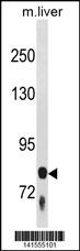 F13B Antibody (N-term) (Cat. APR04523G) western blot analysis in mouse liver tissue lysates (35ug/lane).This demonstrates the F13B antibody detected the F13B protein (arrow). |