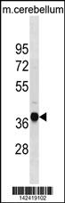 MOUSE Ublcp1 Antibody (Center) (Cat. APR04533G) western blot analysis in mouse cerebellum tissue lysates (35ug/lane).This demonstrates the MOUSE Ublcp1 antibody detected the MOUSE Ublcp1 protein (arrow). |