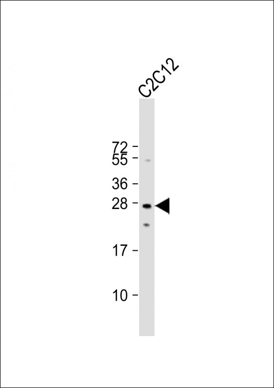 Anti-Mouse p27Kip1 Antibody (C-term T197) at 1:1000 dilution + C2C12 whole cell lysate Lysates/proteins at 20 μg per lane. Secondary Goat Anti-Rabbit IgG, (H+L), Peroxidase conjugated at 1/10000 dilution. Predicted band size : 22 kDa Blocking/Dilution buffer: 5% NFDM/TBST.