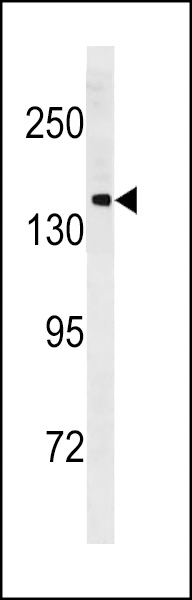 Anti-PCDH11Y Antibody (C-term) at 1:2000 dilution + human brain lysate Lysates/proteins at 20 μg per lane. Secondary Goat Anti-Rabbit IgG, (H+L), Peroxidase conjugated at 1/10000 dilution. Predicted band size : 148 kDa Blocking/Dilution buffer: 5% NFDM/TBST.