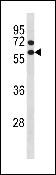 CCNB1 Antibody (Center Y177) (Cat. APR04564G) western blot analysis in NCI-H460 cell line lysates (35ug/lane).This demonstrates the CCNB1 antibody detected the CCNB1 protein (arrow). |