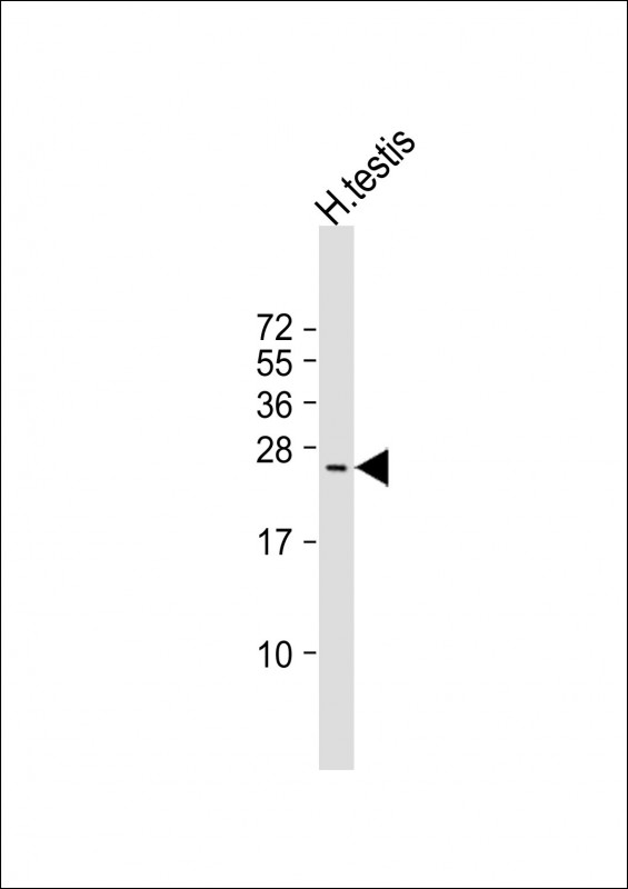 Anti-TUSC1 Antibody (C-Term) at 1:1000 dilution + human testis lysate Lysates/proteins at 20 μg per lane. Secondary Goat Anti-Rabbit IgG, (H+L), Peroxidase conjugated at 1/10000 dilution. Predicted band size : 23 kDa Blocking/Dilution buffer: 5% NFDM/TBST. |