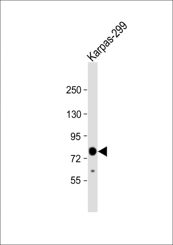 This ALK antibody is generated from a rabbit immunized with a KLH conjugated synthetic peptide between 1466-1500 amino acids from the C-terminal region of human ALK.