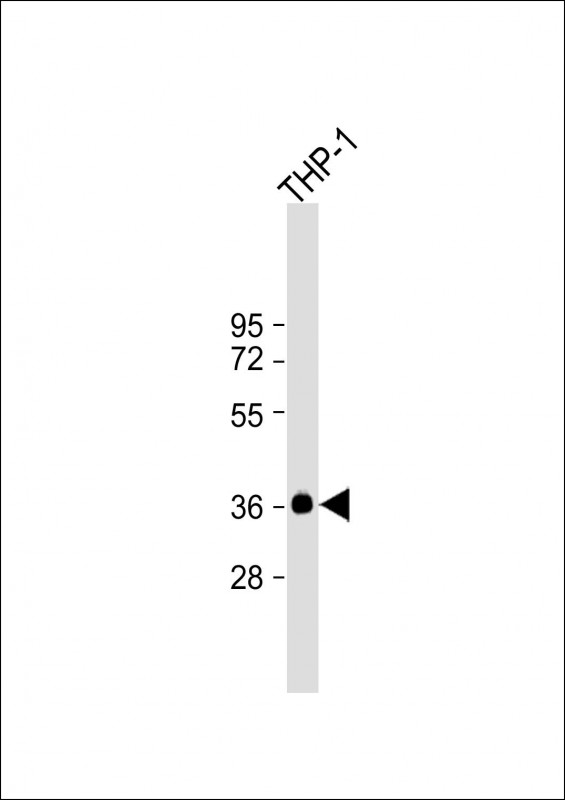 Anti-IKB alpha (IKBA) Antibody at 1:2000 dilution + THP-1 whole cell lysate Lysates/proteins at 20 μg per lane. Secondary Goat Anti-Rabbit IgG, (H+L), Peroxidase conjugated at 1/10000 dilution. Predicted band size : 36 kDa Blocking/Dilution buffer: 5% NFDM/TBST.