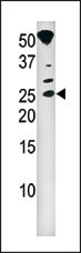 Western blot analysis of anti-p16-INK4A Pab (Cat. APR05136G) in A2058 cell line lysate (35ug/lane). p16-INK4A(arrow) was detected using the purified Pab.