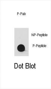 Dot blot analysis of anti-Phospho-YES1-Y537/Phospho-SRC-Y530 Antibody (Cat.APR05154G) on nitrocellulose membrane. 50ng of Phospho-peptide or Non Phospho-peptide per dot were adsorbed. Antibody working concentrations are 0.5ug per ml.
