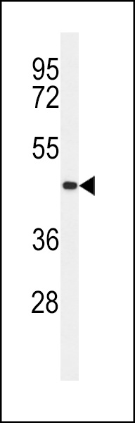 Western blot analysis of CC50B Antibody (N-term) (Cat. APR05364G) in MDA-MB435 cell line lysates (35ug/lane). CC50B (arrow) was detected using the purified Pab.