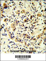 CC50B Antibody (N-term) (Cat. APR05364G) IHC analysis in formalin fixed and paraffin embedded human breast carcinoma followed by peroxidase conjugation of the secondary antibody and DAB staining. This data demonstrates the use of the CC50B Antibody (N-term) for immunohistochemistry. Clinical relevance has not been evaluated.
