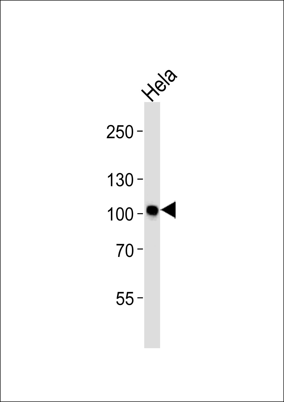 Western blot analysis of lysate from Hela cell line,using APR05373G-NF-KB p100 Antibody (Ab-869). APR05373G was diluted at 1:1000. A goat anti-rabbit IgG H&L(HRP) at 1:5000 dilution was used as the secondary antibody.Lysate at 35ug.