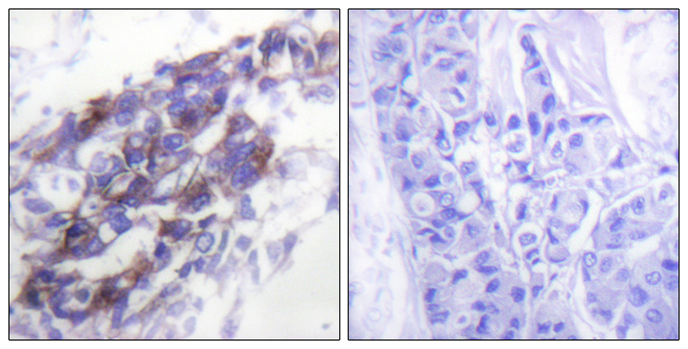 Immunohistochemical analysis of paraffin-embedded human breast carcinoma tissue using Keratin 8 antibody. |