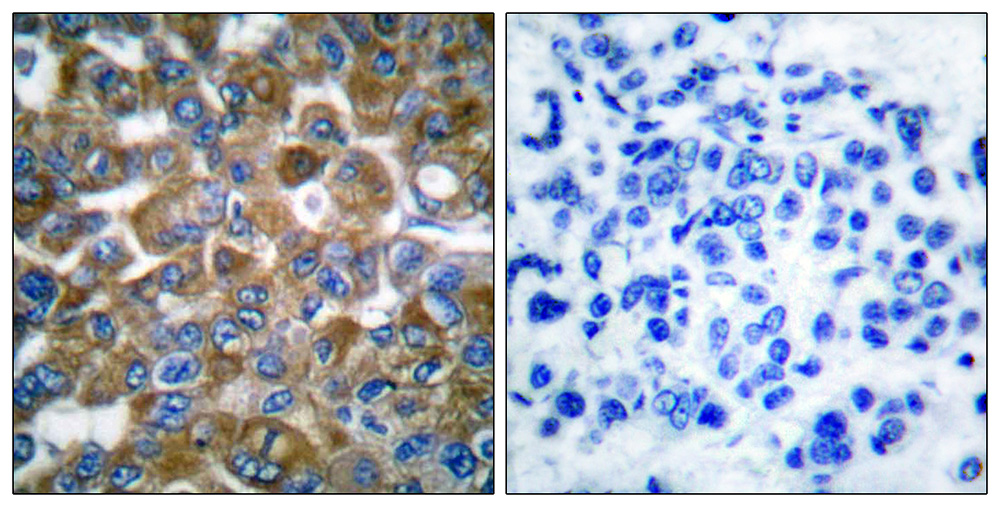 Immunohistochemical analysis of paraffin-embedded human breast carcinoma tissue using Keratin 15 antibody . |