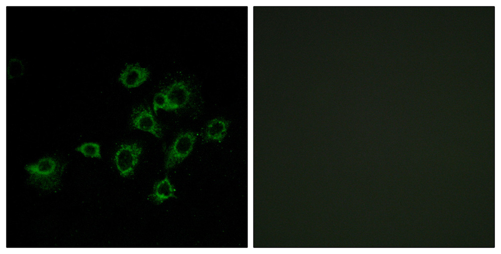 Immunofluorescence analysis of A549 cells, using LILRA1 antibody. |