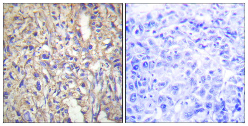 Immunohistochemistry analysis of paraffin-embedded human liver carcinoma tissue using BAX antibody. |