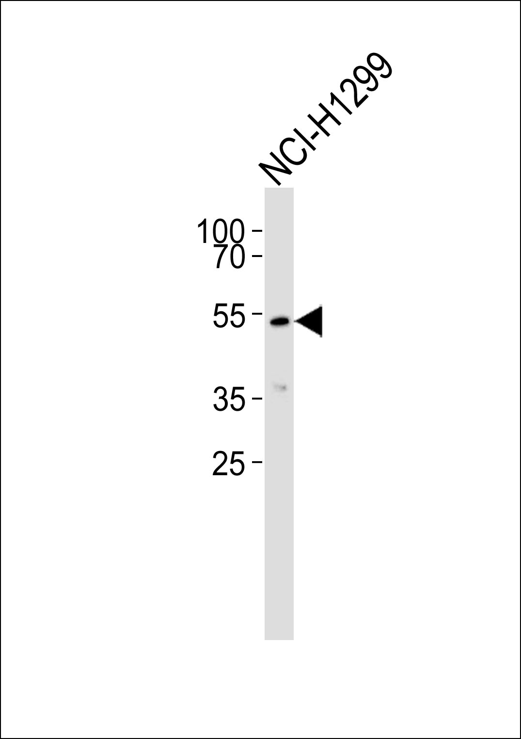 Western blot analysis of lysate from NCI-H1299 cell line,using ADCK1 Antibody(APR05463G). APR05463G was diluted at 1:1000. A goat anti-rabbit IgG H&L(HRP) at 1:5000 dilution was used as the secondary antibody.Lysate at 35ug. |