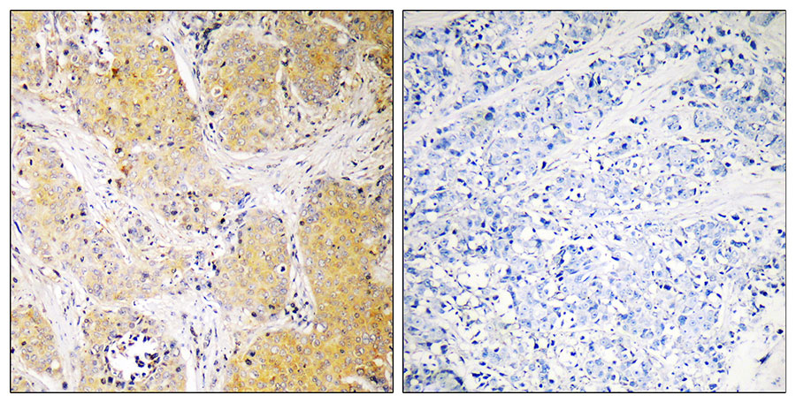 Immunohistochemistry analysis of paraffin-embedded human breast carcinoma tissue using SERPING1 antibody. |