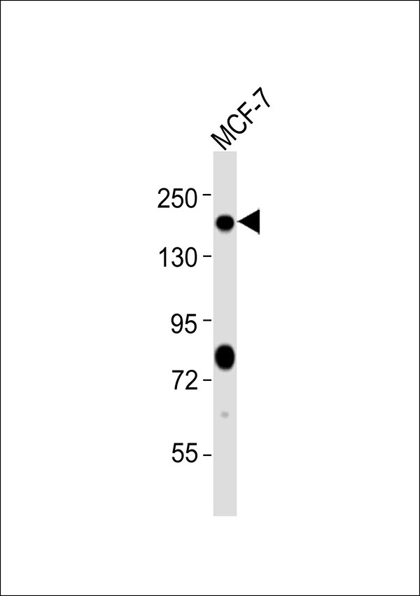 Anti-Patched Antibodyat 1:1000 dilution + MCF-7 whole cell lysates Lysates/proteins at 20 μg per lane. Secondary Goat Anti-Rabbit IgG, (H+L),Peroxidase conjugated at 1/10000 dilution Predicted band size : 161 kDa Blocking/Dilution buffer: 5% NFDM/TBST. |