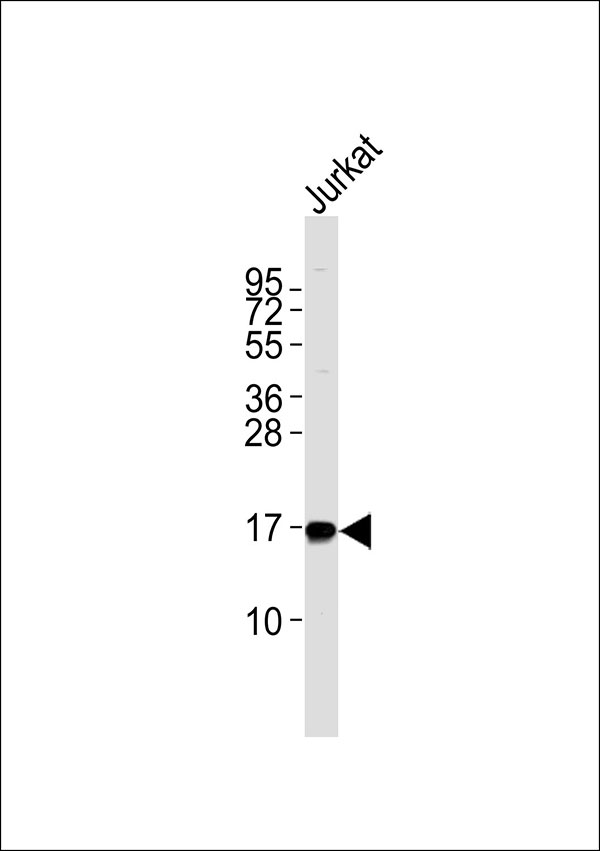 Anti-NBL1 Antibodyat 1:1000 dilution + Jurkat whole cell lysates Lysates/proteins at 20 μg per lane. Secondary Goat Anti-Rabbit IgG, (H+L),Peroxidase conjugated at 1/10000 dilution Predicted band size : 19 kDa Blocking/Dilution buffer: 5% NFDM/TBST. |