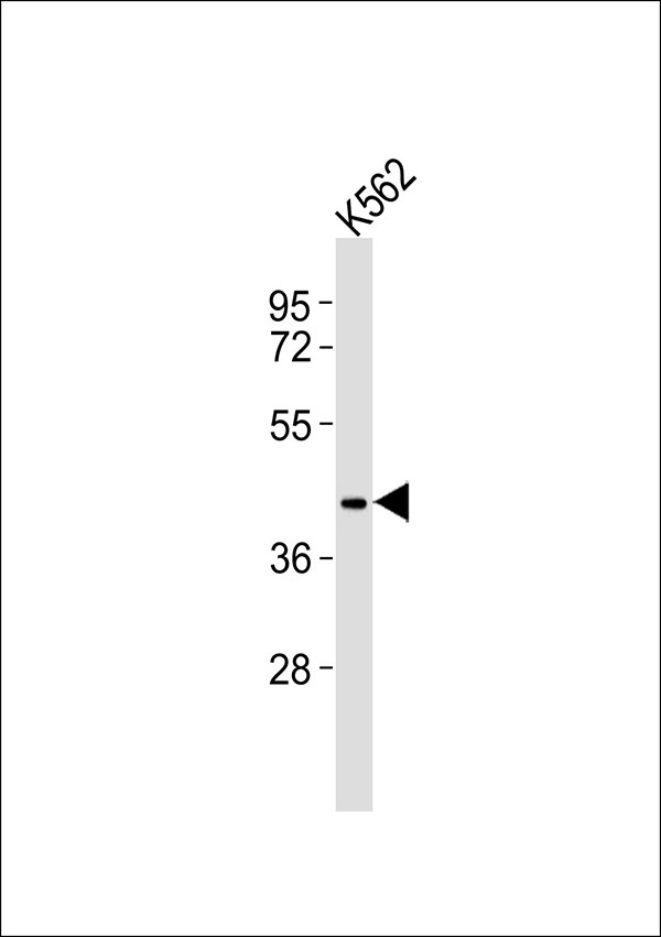 Anti-FPR1 Antibodyat 1:1000 dilution + K562 whole cell lysates Lysates/proteins at 20 μg per lane. Secondary Goat Anti-Rabbit IgG, (H+L),Peroxidase conjugated at 1/10000 dilution Predicted band size : 38 kDa Blocking/Dilution buffer: 5% NFDM/TBST. |