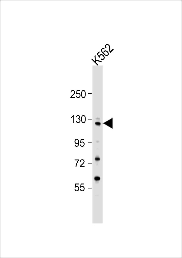 Anti-Collagen 19 alpha 1 Antibody at 1:1000 dilution + K562 whole cell lysate Lysates/proteins at 20 μg per lane. Secondary Goat Anti-Rabbit IgG, (H+L),Peroxidase conjugated at 1/10000 dilution. Predicted band size : 115 kDa Blocking/Dilution buffer: 5% NFDM/TBST. |