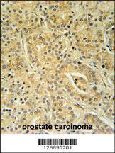 UBAC1 Antibody (C-term) (Cat. APR05641G) immunohistochemistry analysis in formalin fixed and paraffin embedded human prostate carcinoma followed by peroxidase conjugation of the secondary antibody and DAB staining. This data demonstrates the use of the UBAC1 Antibody (C-term) for immunohistochemistry. Clinical relevance has not been evaluated.