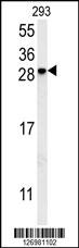KCT2 Antibody (Center) (Cat. APR05659G) western blot analysis in 293 cell line lysates (15ug/lane).This demonstrates the KCT2 antibody detected the KCT2 protein (arrow).