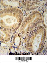 RBM24 Antibody (N-term) (Cat. APR05661G) immunohistochemistry analysis in formalin fixed and paraffin embedded human prostate carcinoma followed by peroxidase conjugation of the secondary antibody and DAB staining. This data demonstrates the use of the RBM24 Antibody (N-term) for immunohistochemistry. Clinical relevance has not been evaluated.