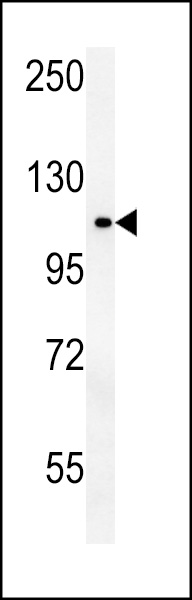OTUD4 Antibody (N-term) (Cat. APR05694G) western blot analysis in MDA-MB435 cell line lysates (35ug/lane).This demonstrates the OTUD4 antibody detected the OTUD4 protein (arrow).