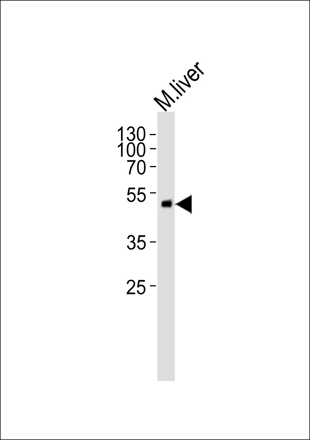 Western blot analysis of lysate from mouse liver tissue lysate, using SCDGFB Antibody (Center)(APR05726G). AP6263A was diluted at 1:1000. A goat anti-rabbit IgG H&L(HRP) at 1:10000 dilution was used as the secondary antibody. Lysate at 35ug.