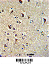 Formalin-fixed and paraffin-embedded human brain tissue reacted with TIEG2 Antibody (N-term), which was peroxidase-conjugated to the secondary antibody, followed by DAB staining. This data demonstrates the use of this antibody for immunohistochemistry; clinical relevance has not been evaluated.