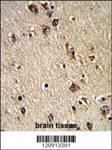 Formalin-fixed and paraffin-embedded human brain tissue reacted with ALAD Antibody (C-term), which was peroxidase-conjugated to the secondary antibody, followed by DAB staining. This data demonstrates the use of this antibody for immunohistochemistry; clinical relevance has not been evaluated.