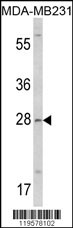 Western blot analysis of COLEC11 Antibody (N-term) (Cat. APR05811G) in MDA-MB231 cell line lysates (35ug/lane). COLEC11 (arrow) was detected using the purified Pab.