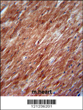 IL2 Antibody (Center) (Cat. APR05820G) immunohistochemistry analysis in formalin fixed and paraffin embedded mouse heart tissue followed by peroxidase conjugation of the secondary antibody and DAB staining. This data demonstrates the use of the IL2 Antibody (Center) for immunohistochemistry. Clinical relevance has not been evaluated. |