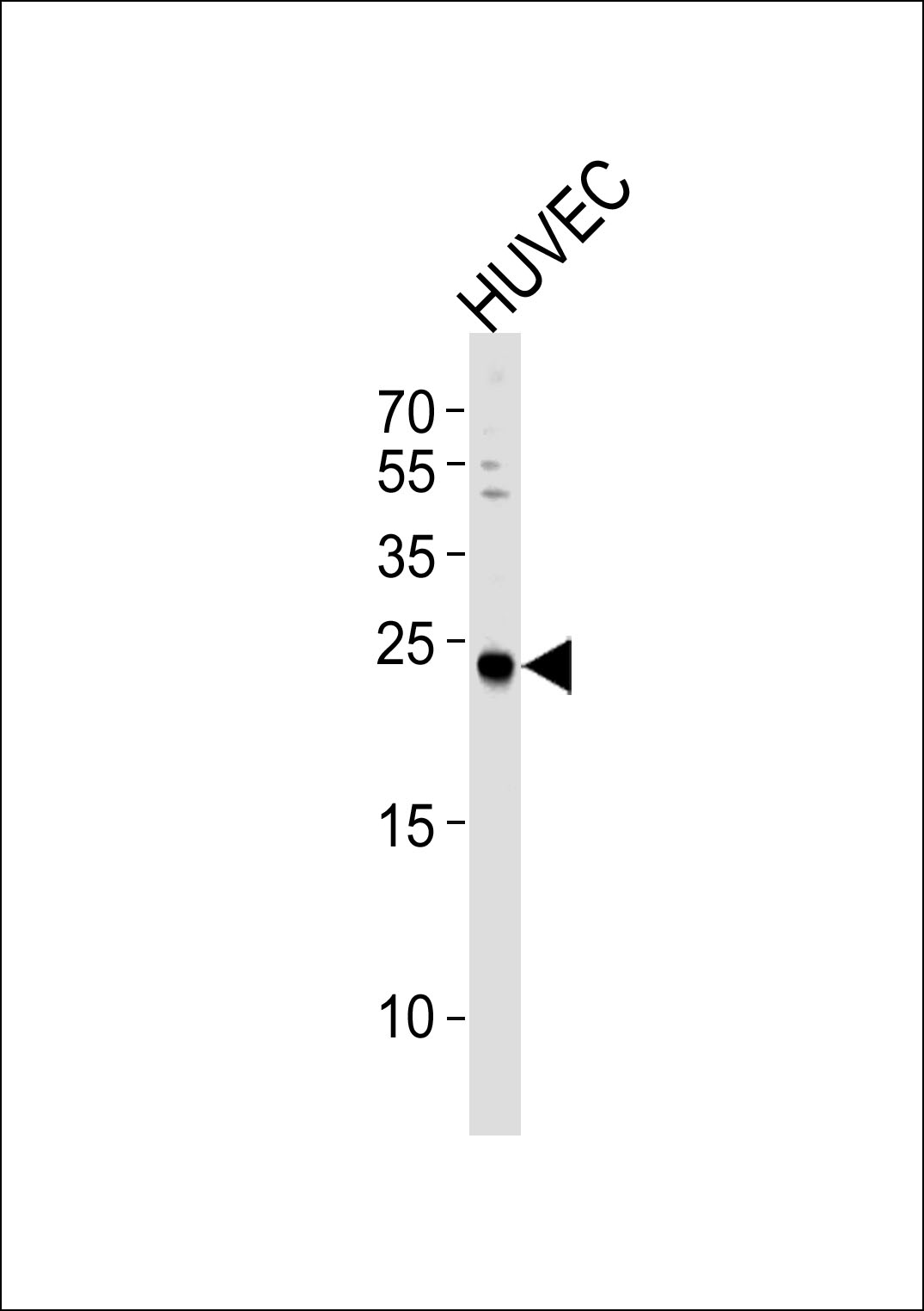 Western blot analysis of lysate from HUVEC cell line, using CSNK2B Antibody(Cat. APR05841G). APR05841G was diluted at 1:1000 at each lane. A goat anti-rabbit IgG H&L(HRP) at 1:5000 dilution was used as the secondary antibody. Lysate at 35ug per lane. |