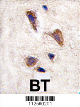 Formalin-fixed and paraffin-embedded human brain tissue reacted with CAMKK2 antibody (C-term)(Cat.AP711b), which was peroxidase-conjugated to the secondary antibody, followed by DAB staining. This data demonstrates the use of this antibody for immunohistochemistry; clinical relevance has not been evaluated. |
