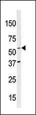 Western blot analysis of anti-APPBP1 Antibody (C-term) (Cat.APR05875G) in mouse brain tissue lysates (35ug/lane). APPBP1(arrow) was detected using the purified Pab.