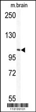 Western blot analysis of TECPR1 Antibody (C-term) (Cat. APR05902G) in mouse brain tissue lysates (35ug/lane). TECPR1 (arrow) was detected using the purified Pab.
