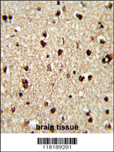 Formalin-fixed and paraffin-embedded human brain reacted with TECPR1 Antibody (C-term), which was peroxidase-conjugated to the secondary antibody, followed by DAB staining. This data demonstrates the use of this antibody for immunohistochemistry; clinical relevance has not been evaluated.