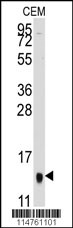 Western blot analysis of anti-GLT Pab (Cat.APR05938G) in CEM cell line lysates (35ug/lane). GLT(arrow) was detected using the purified Pab. |