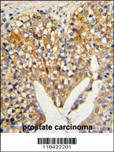 Formalin-fixed and paraffin-embedded human prostate carcinoma reacted with LUM Antibody (N-term), which was peroxidase-conjugated to the secondary antibody, followed by DAB staining. This data demonstrates the use of this antibody for immunohistochemistry; clinical relevance has not been evaluated.