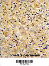 Formalin-fixed and paraffin-embedded human prostate carcinoma reacted with LUM Antibody (Center), which was peroxidase-conjugated to the secondary antibody, followed by DAB staining. This data demonstrates the use of this antibody for immunohistochemistry; clinical relevance has not been evaluated.