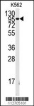 Western blot analysis of anti-FGFR1 Antibody (Y154) (Cat.APR05973G) in K562 cell line lysates (35ug/lane).FGFR1 (arrow) was detected using the purified Pab.